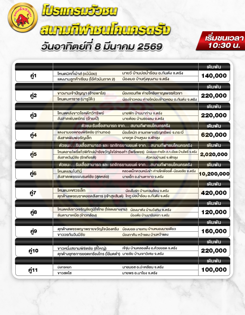 สนามกีฬาชนโค นครตรัง วันที่ 8 มีนาคม 2568
