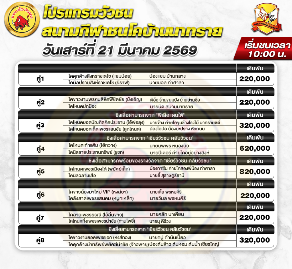 สนามกีฬาชนโค นาทราย วันที่ 21 มีนาคม 2568