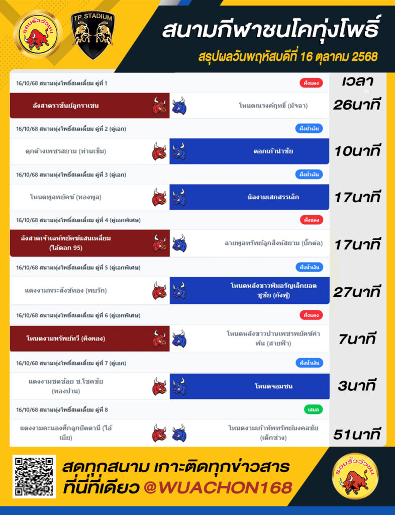 สรุปผลวัว ทุ่งโพธิ์ วันที่ 16 ตุลาคม 2568