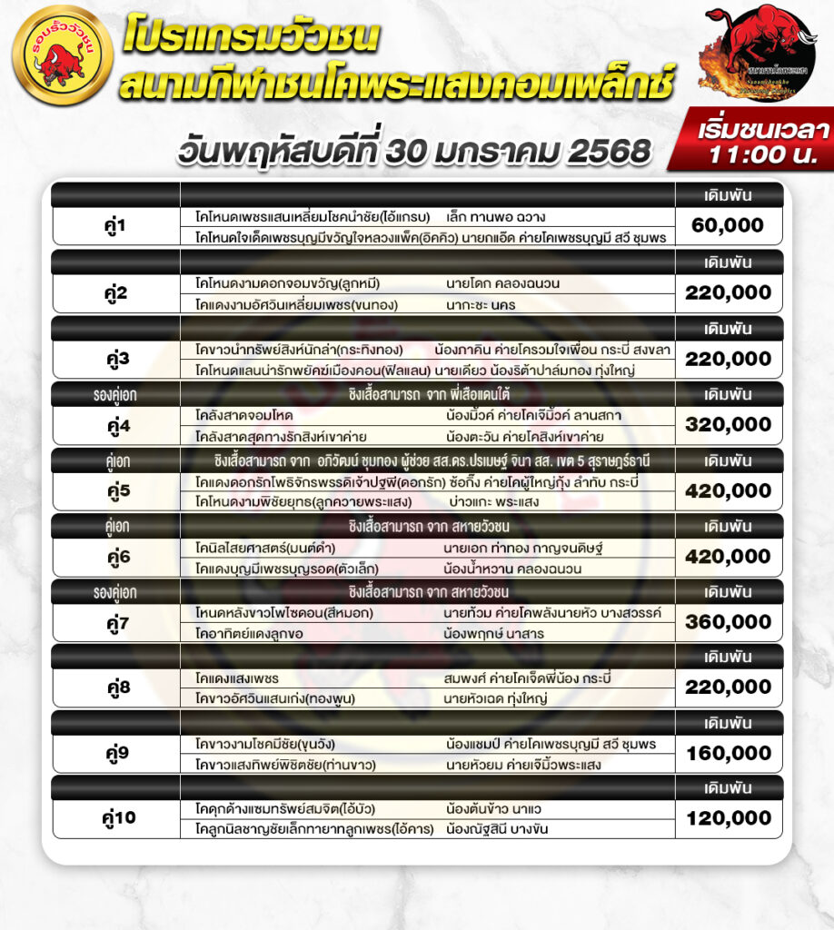 สรุปผลวัว ทุ่งขมิ้น วันที่ 25 มกราคม 2568