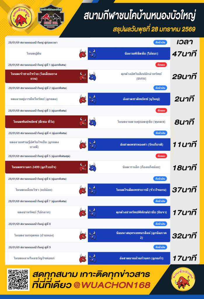 สรุปผลวัว หนองบัวใหญ่ วันที่ 28 มกราคม 2569