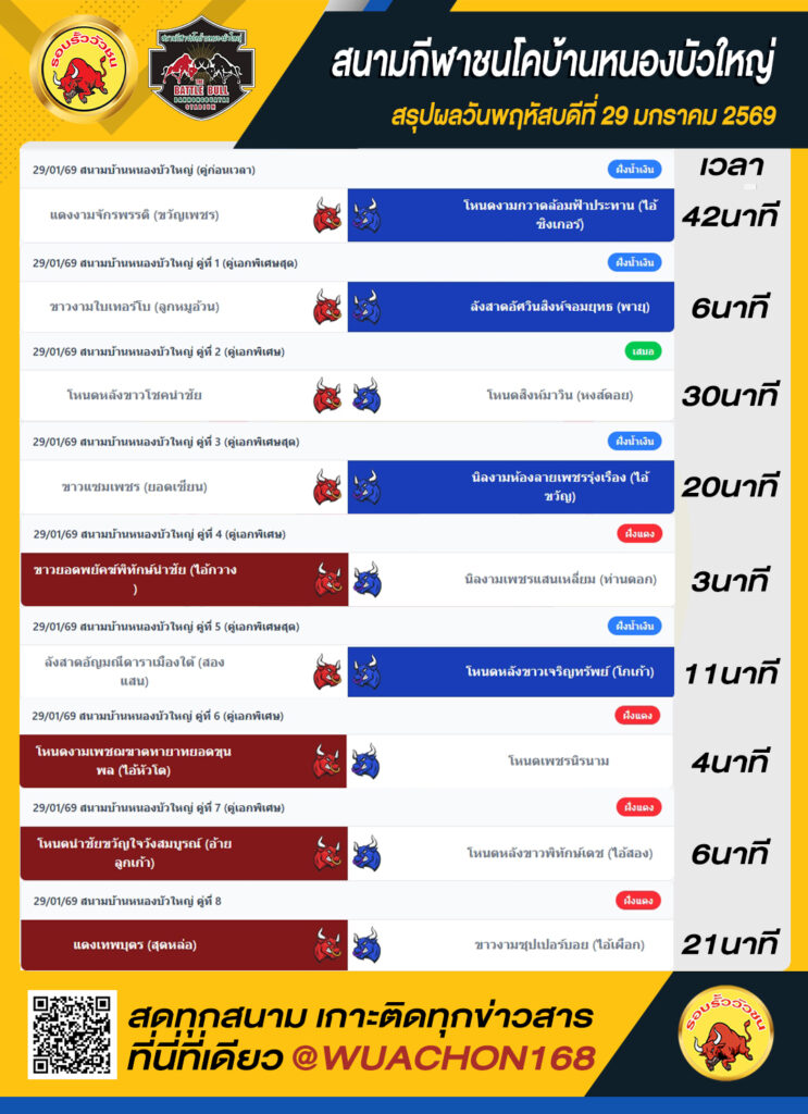 สรุปผลวัว หนองบัวใหญ่ วันที่ 29 มกราคม 2569