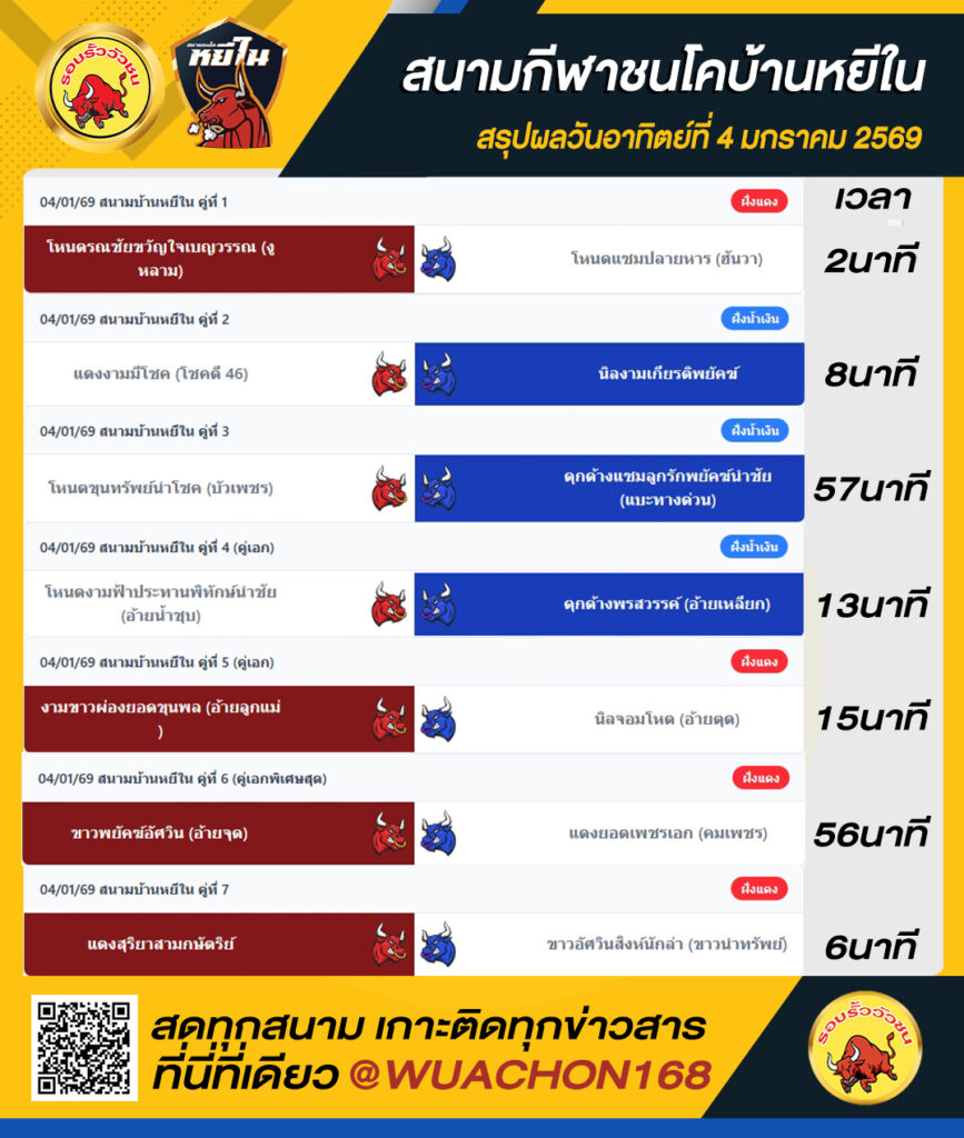 สรุปผลวัว หยีใน วันที่ 4 มกราคม 2569
