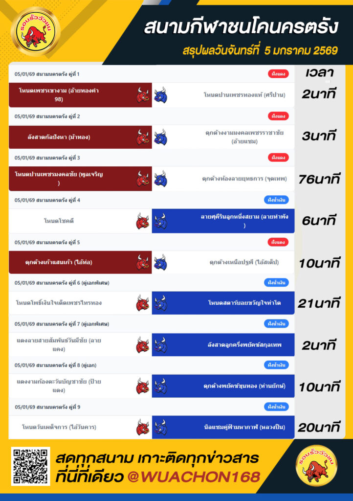 สรุปผลวัว นครตรัง วันที่ 5 มกราคม 2569
