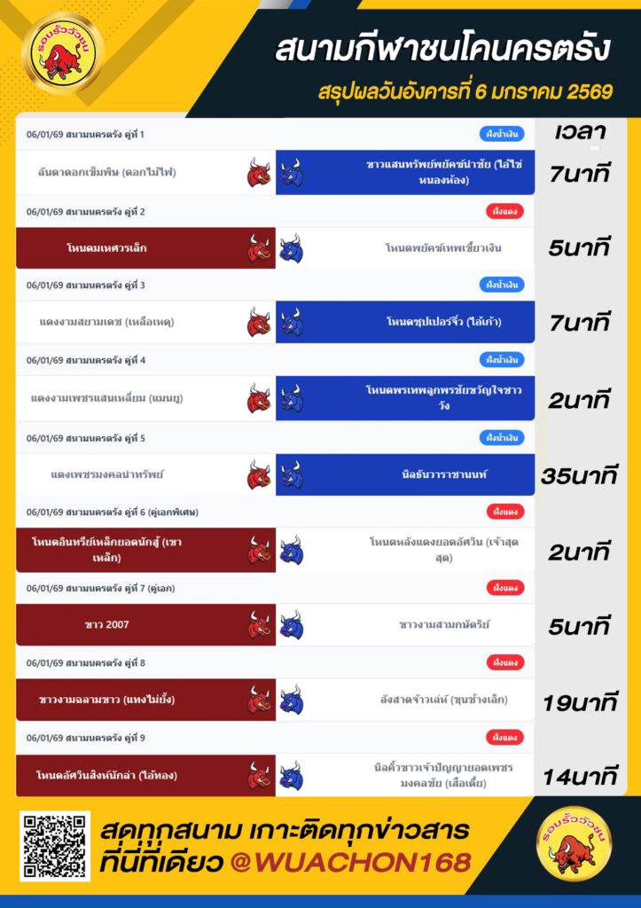 สรุปผลวัว นครตรัง วันที่ 6 มกราคม 2569
