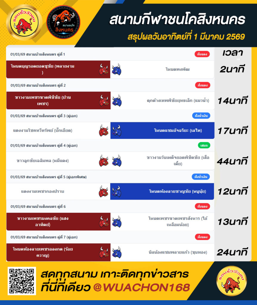 สรุปผลวัว สิงหนคร วันที่ 1 มีนาคม 2569