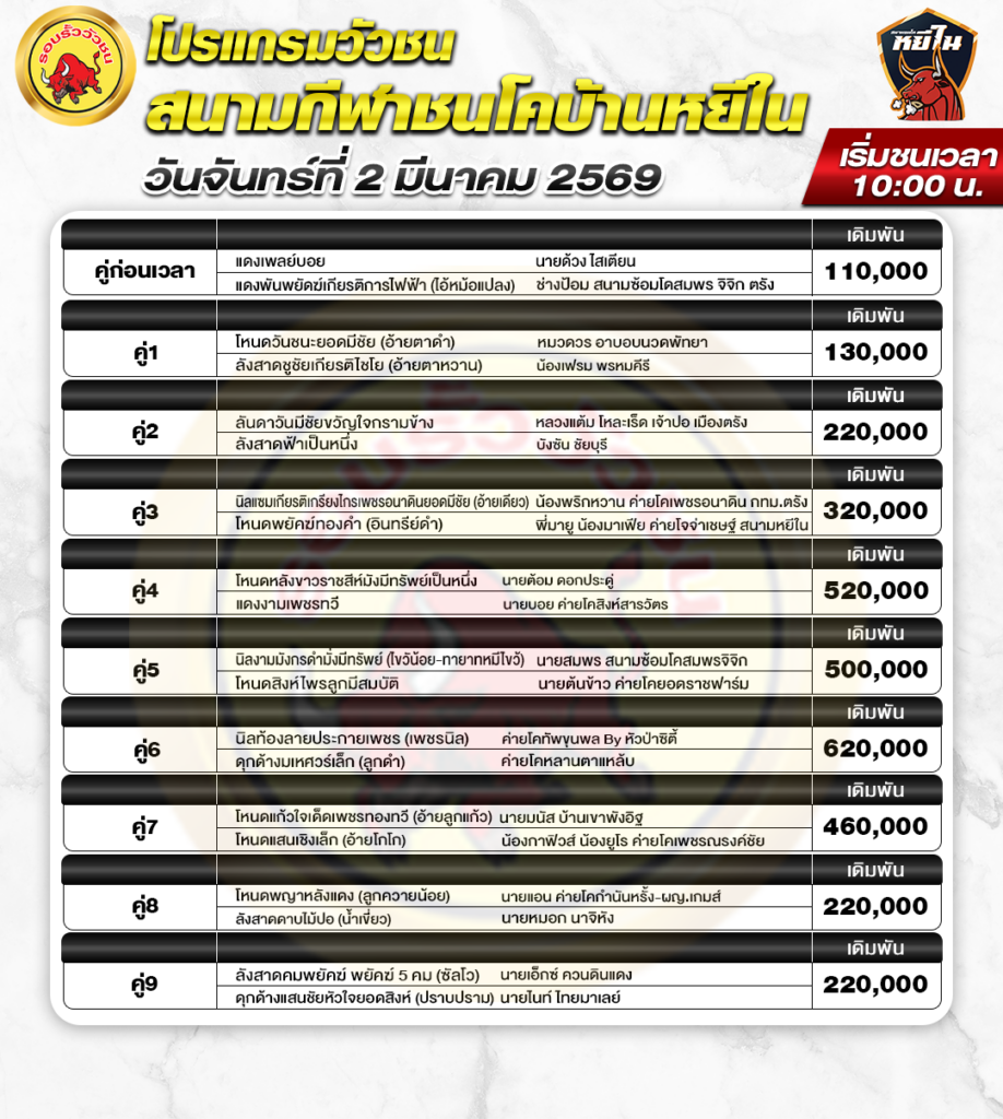 สนามกีฬาชนโค หยีใน วันที่ 2 มีนาคม 2569