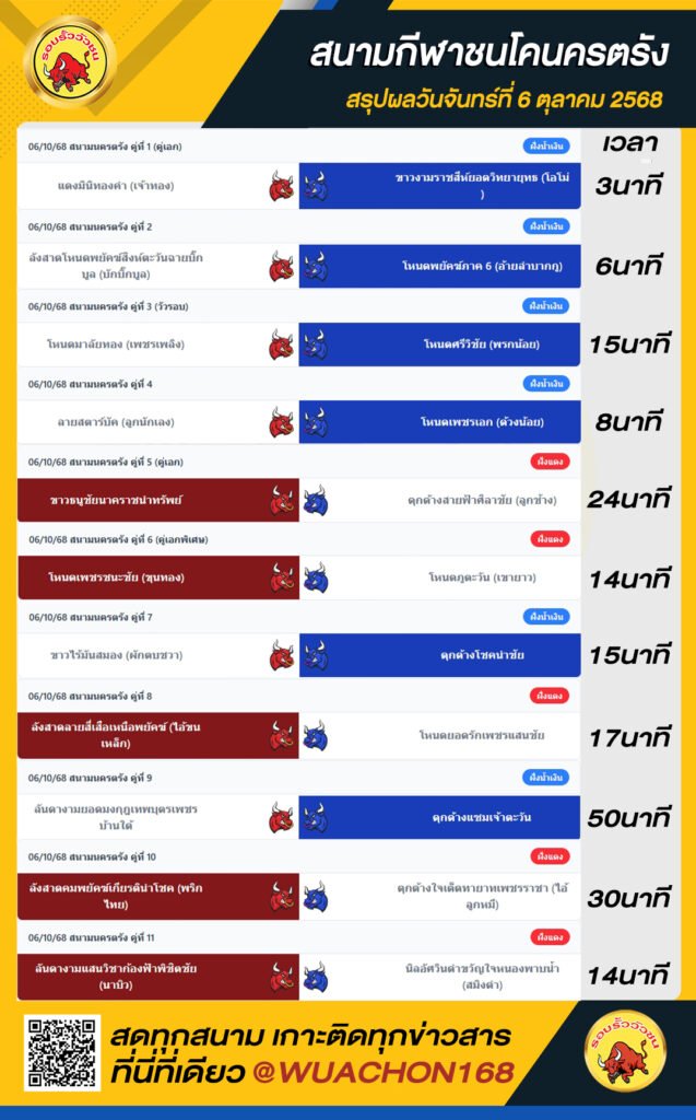 สรุปผลวัว นครตรัง วันที่ 6 ตุลาคม 2568