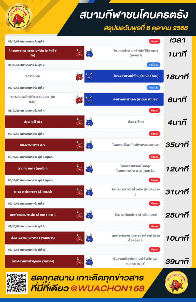 สรุปผลวัว นครตรัง วันที่ 8 ตุลาคม 2568