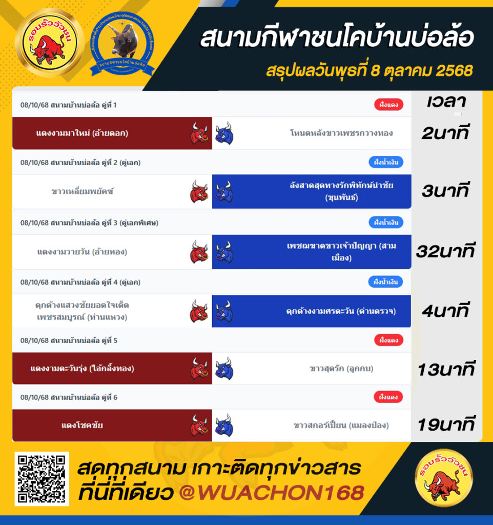 สรุปผลวัว บ่อล้อ วันที่ 8 ตุลาคม 2568