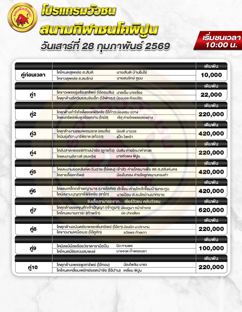 สนามกีฬาชนโค พิปูน วันที่ 28 กุมภาพันธ์ 2569