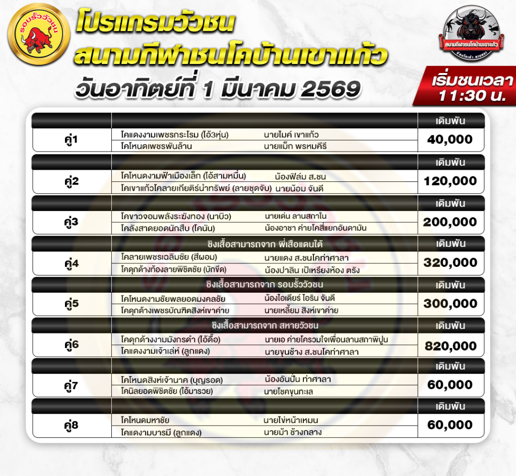 สนามกีฬาชนโค เขาแก้ว วันที่ 1 มีนาคม 2568