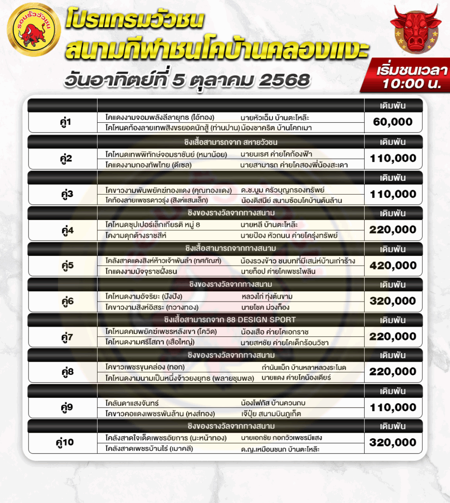 สนามกีฬาชนโค คลองแงะ วันที่ 5 ตุลาคม 2568