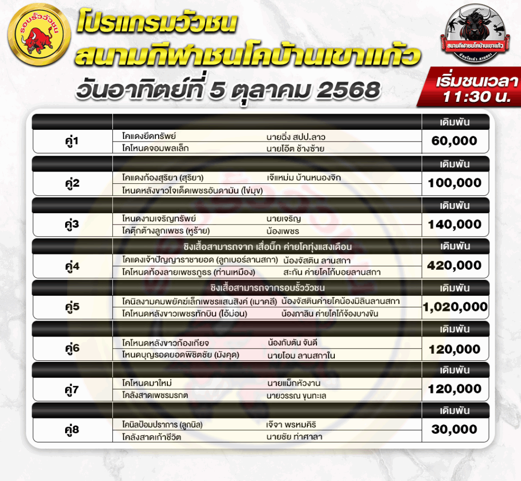 สนามกีฬาชนโค เขาแก้ว วันที่ 5 ตุลาคม 2568