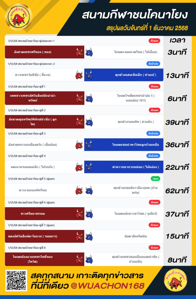 สรุปผลวัว นาโยง วันที่ 1 ธันวาคม 2568