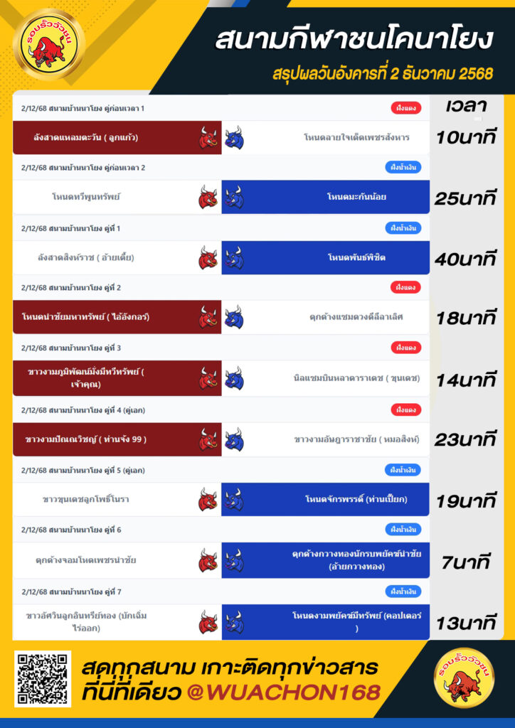 สรุปผลวัว นาโยง วันที่ 2 ธันวาคม 2568