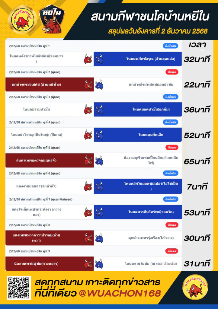 สรุปผลวัว หยีใน วันที่ 2 ธันวาคม 2568