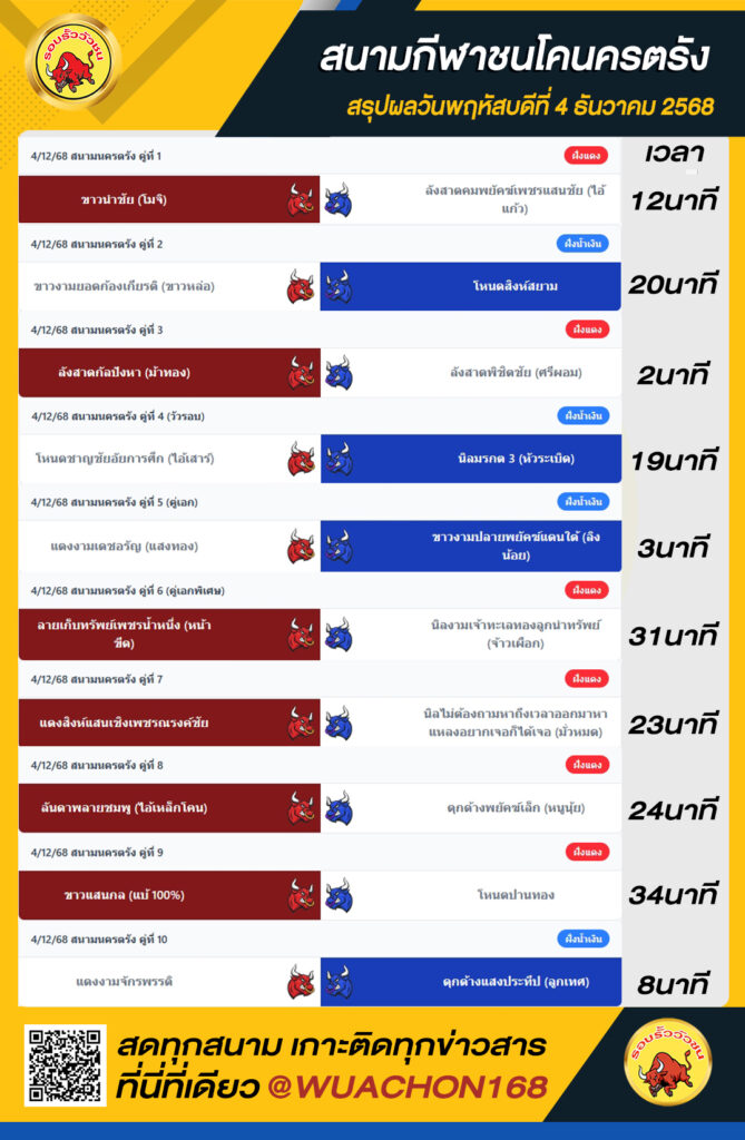 สรุปผลวัว นครตรัง วันที่ 4 ธันวาคม 2568