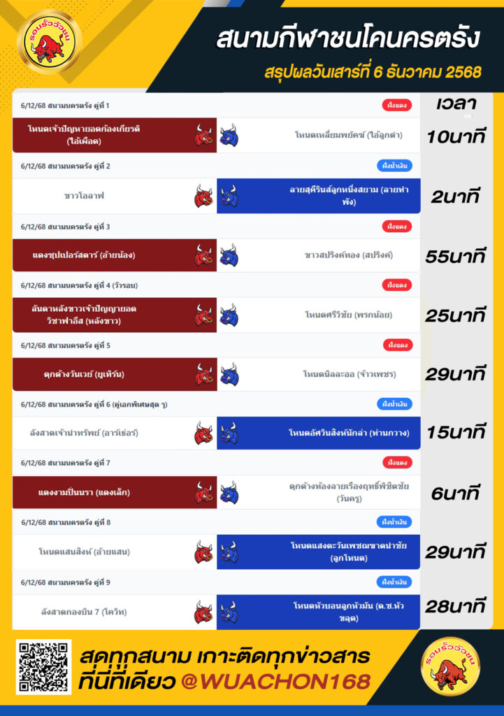 สรุปผลวัว นครตรัง วันที่ 6 ธันวาคม 2568