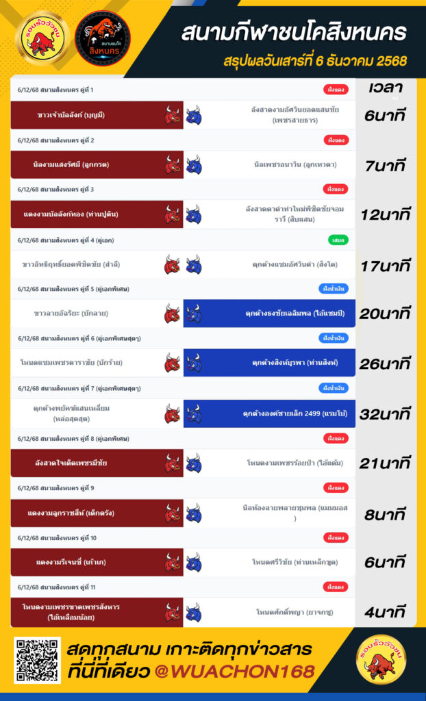 สรุปผลวัว สิงหนคร วันที่ 6 ธันวาคม 2568