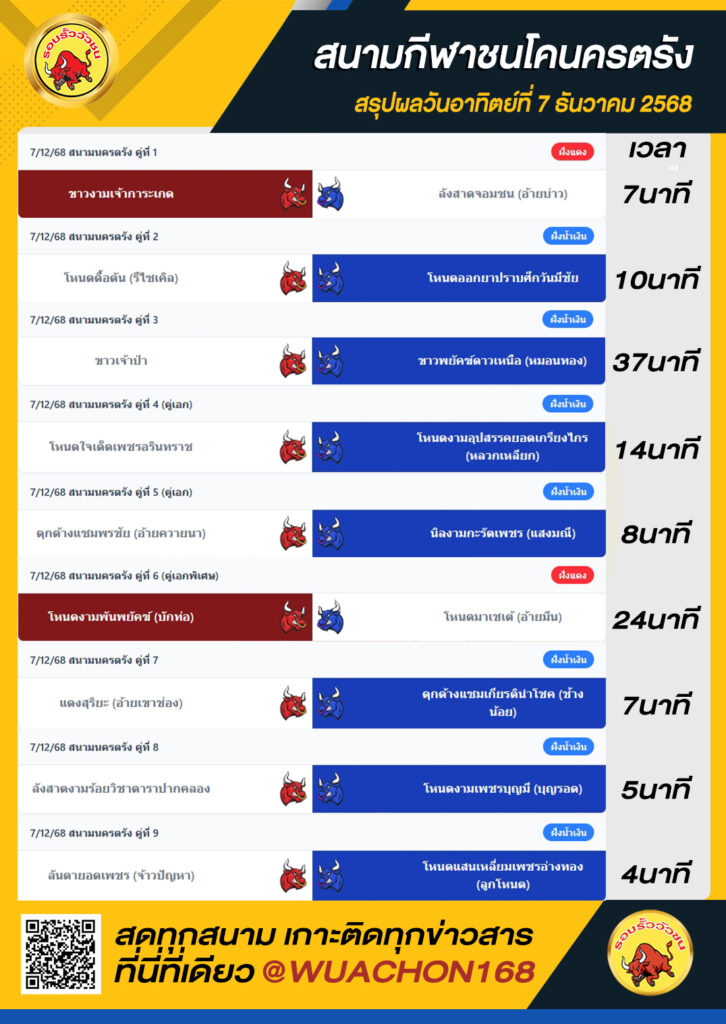 สรุปผลวัว นครตรัง วันที่ 7 ธันวาคม 2568