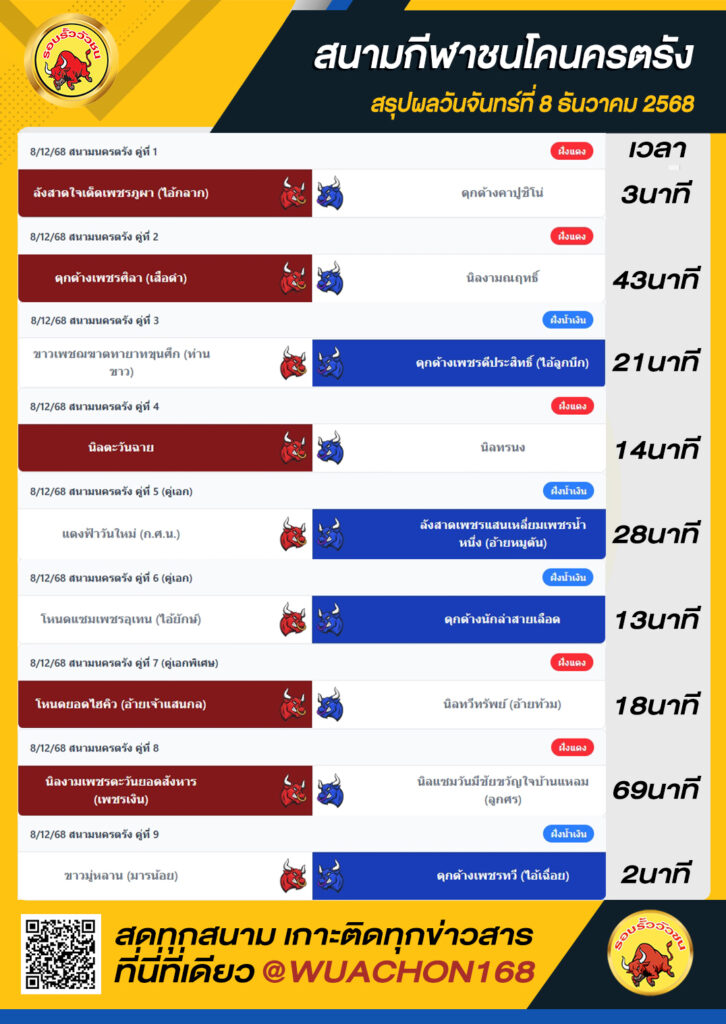 สรุปผลวัว นครตรัง วันที่ 8 ธันวาคม 2568