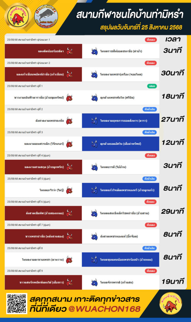 สรุปผลวัว ท่ามิหรำ วันที่ 25 สิงหาคม 2568