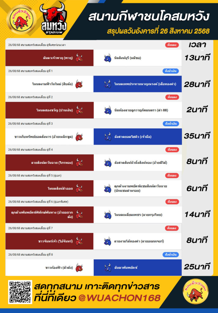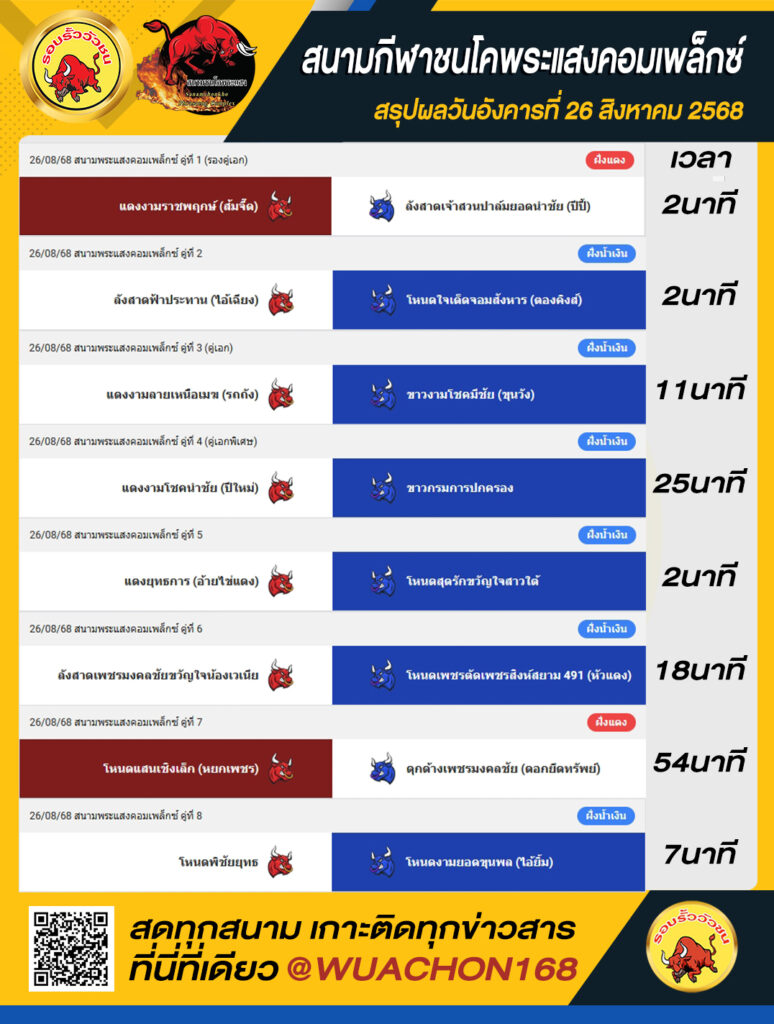 สรุปผลวัว พระแสง วันที่ 26 สิงหาคม 2568