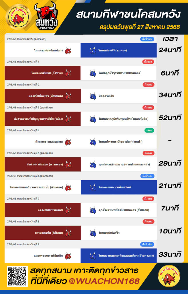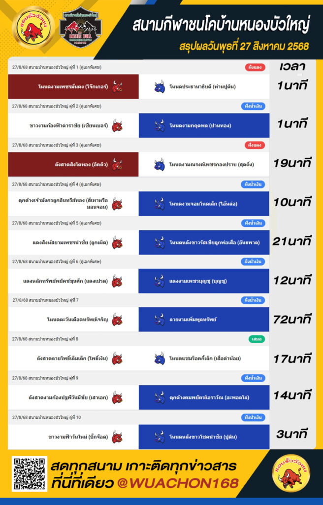 สรุปผลวัว หนองบัวใหญ่ วันที่ 27 สิงหาคม 2568